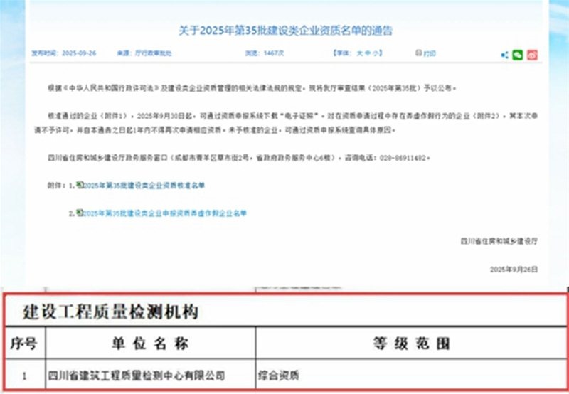 建科院獲全省首個“建設工程質(zhì)量綜合檢測資質(zhì)” 2025-09-30